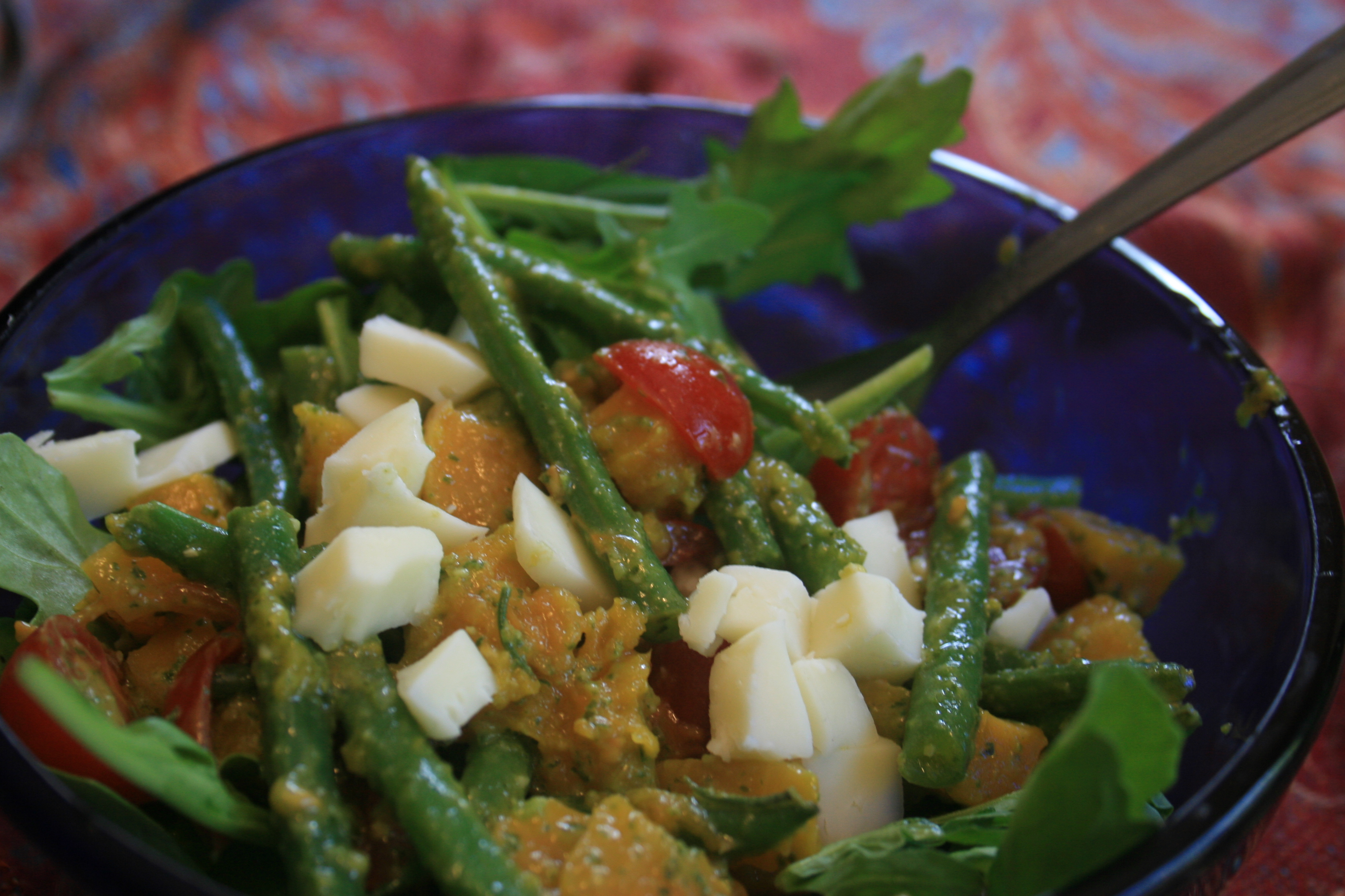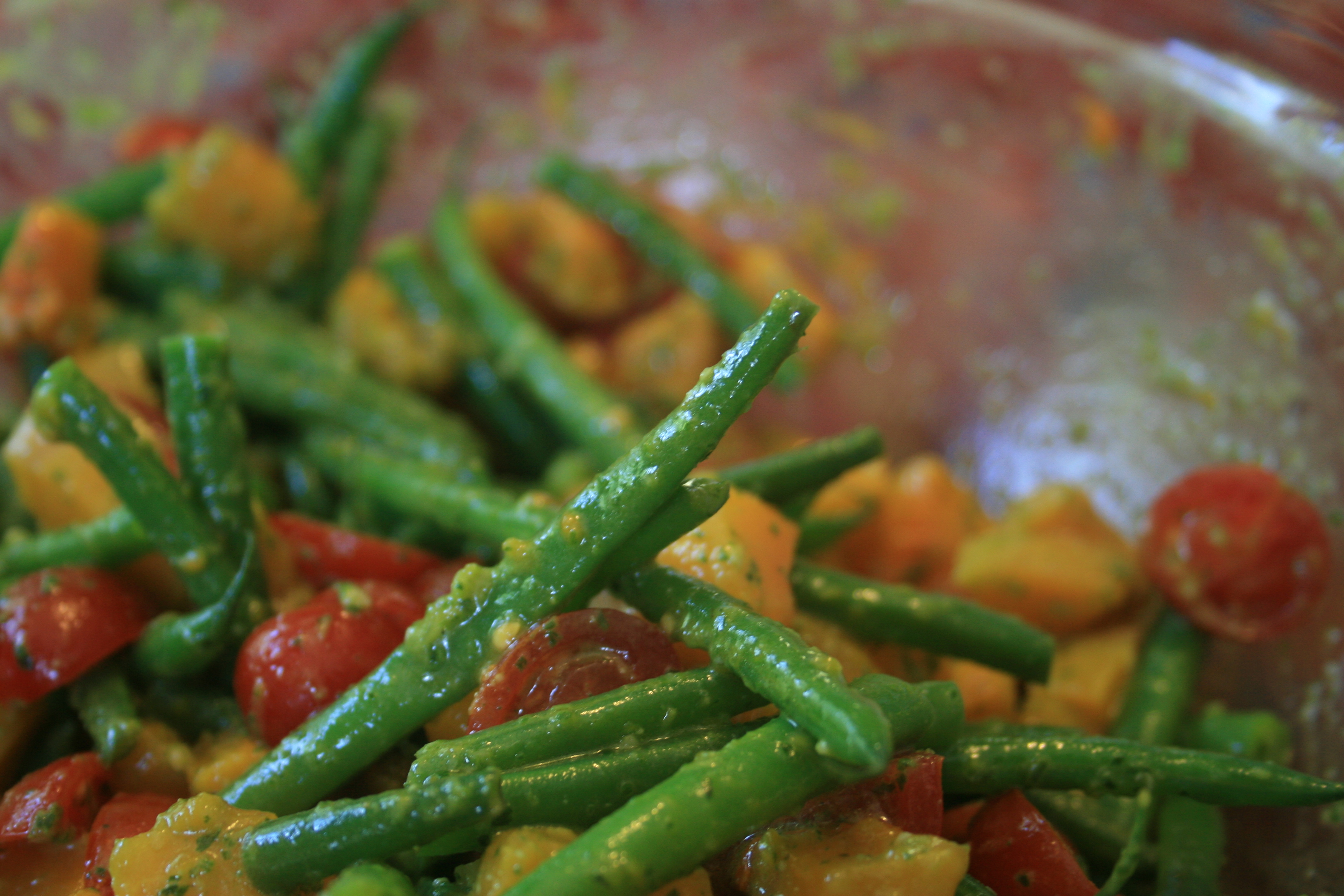Squash, Green Bean, and Cherry Tomato Salad with Pesto