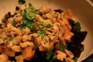 Add the eggs, sugar, oil, and vanilla and blend into the dry ingredients until just amalgamated. Add the nuts and ONE cup of the grated carrots and pulse everything together. This was a good trick I did by accident but made a huge difference: I liked the nuts a little more chopped and some of them completely ground, and some of the carrots being pulverized made the cake a great texture.
